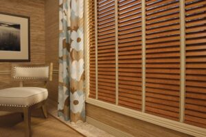 Дерево – солидный и изысканный материал. Оно выглядит добротно, сдержанно и дорого одновременно, расставляет акценты в интерьере, привносит в него нотки аристократизма. Если вы покупали деревянную мебель, использовали материал в отделке, продумайте каждую мелочь – чтобы не испортить общее впечатление. Для подобных помещений идеально подходят классические тканевые портьеры, бамбуковые и деревянные жалюзи. Они выглядят солидно и роскошно, гармонично дополнят текущую обстановку. Кстати, жалюзи из дерева подойдут и для простой обстановки, сделают ее более изысканной, яркой, добавят оригинальные нотки.